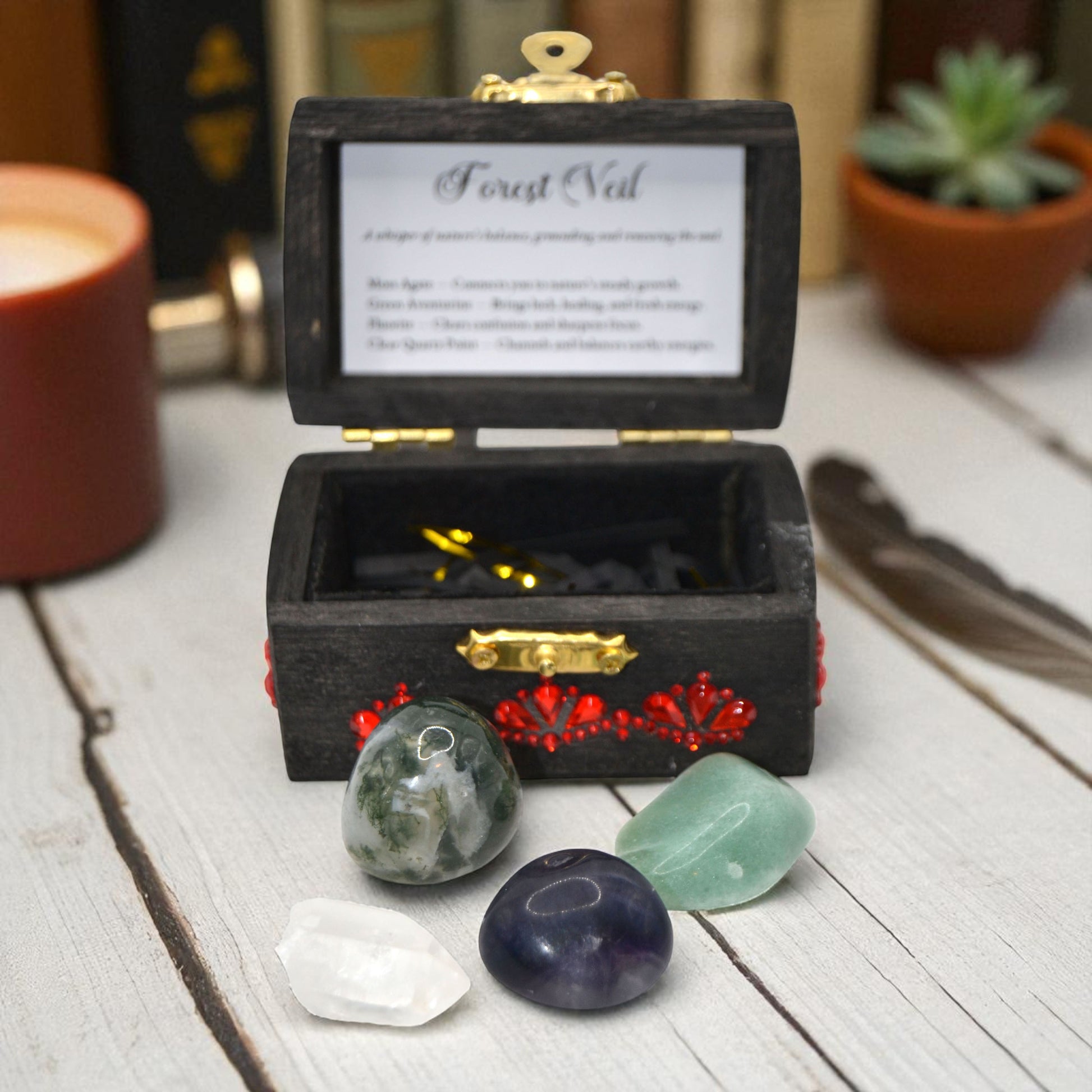 Handcrafted with care. Cleansed with intention. Made to support your journey. May this veil of green remind you that healing often comes softly, like leaves growing back after winter.