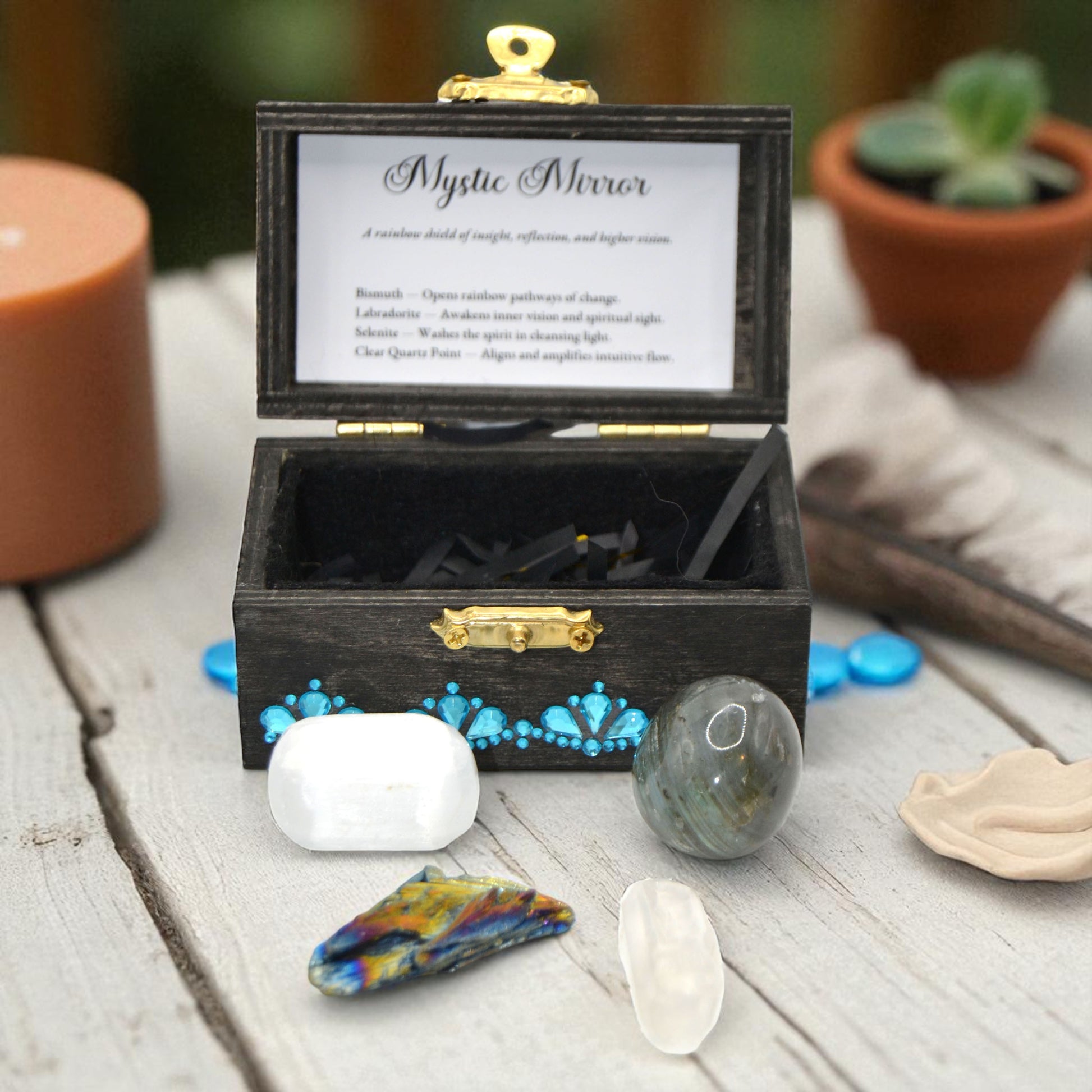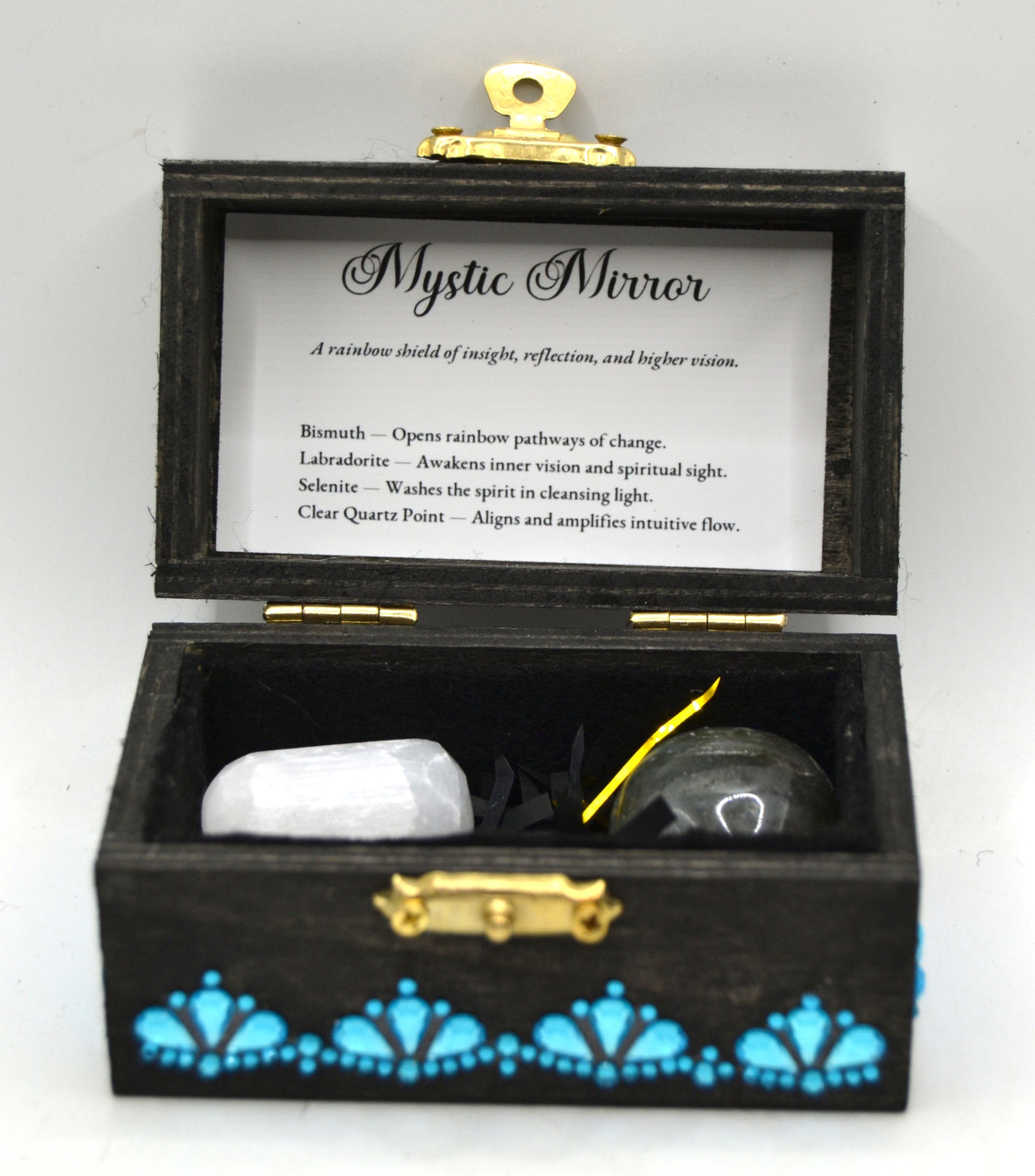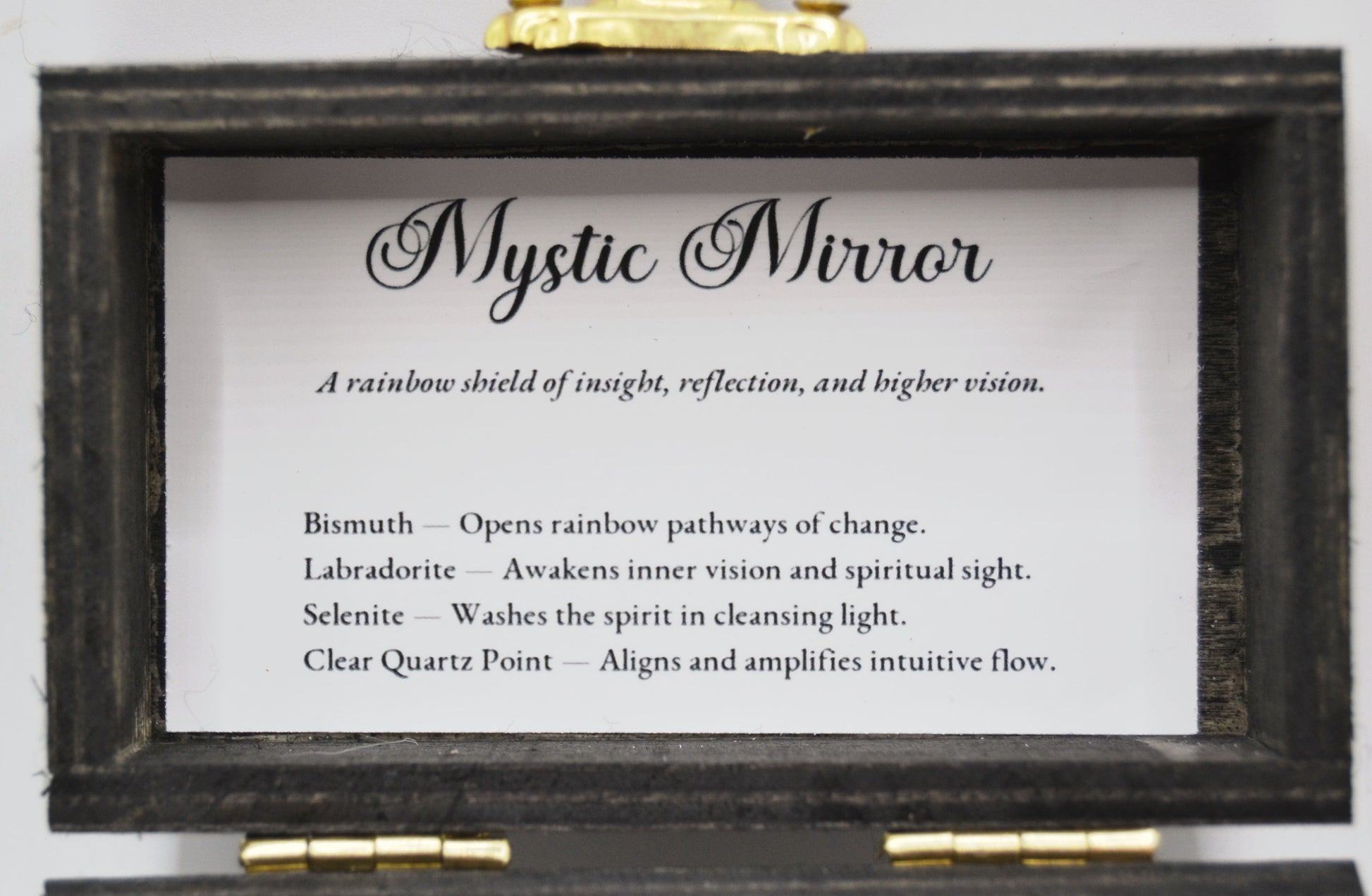 Handcrafted with care. Cleansed with intention. Made to support your journey. May the Mystic Mirror reflect your truest light back to you.
