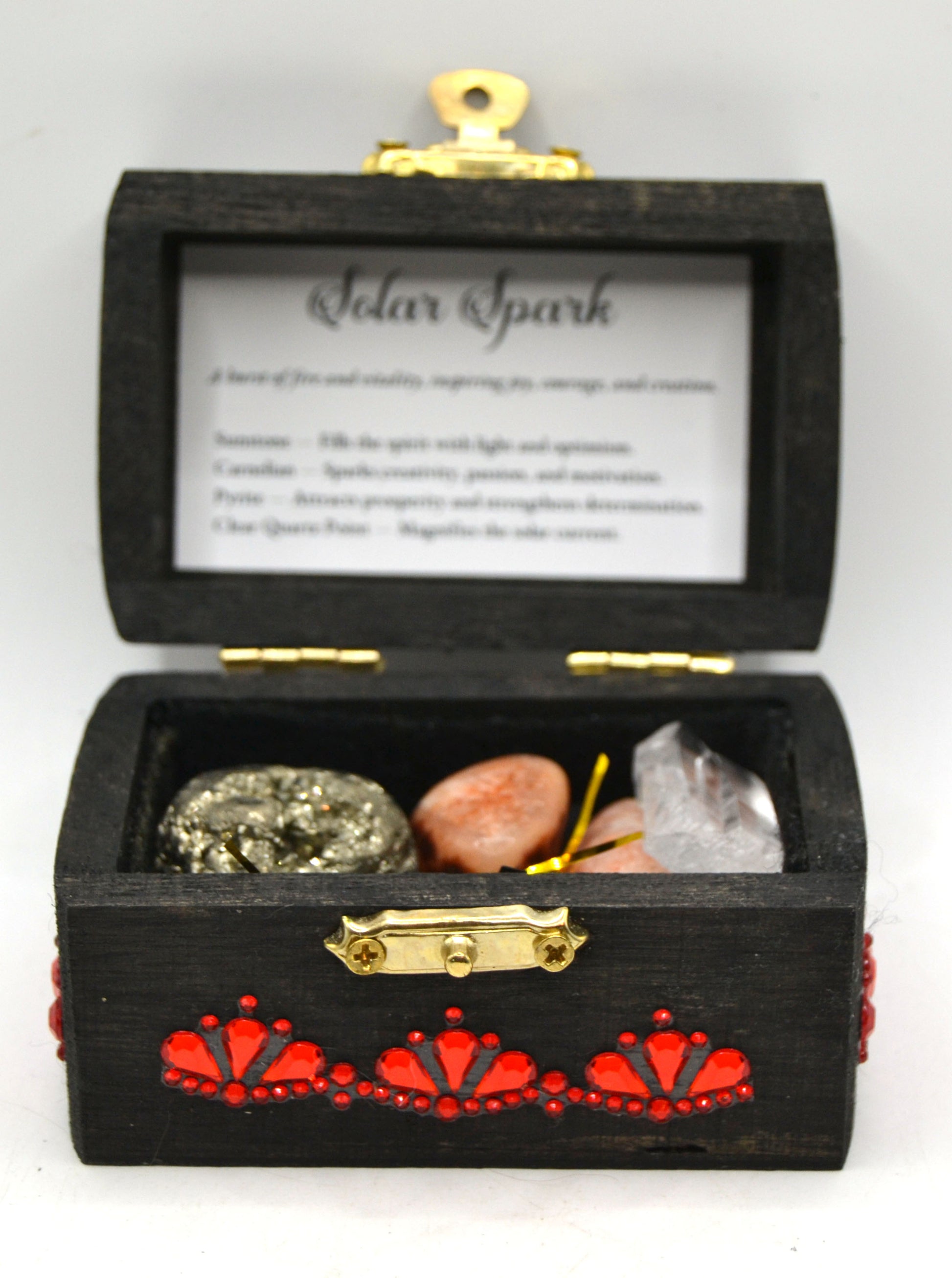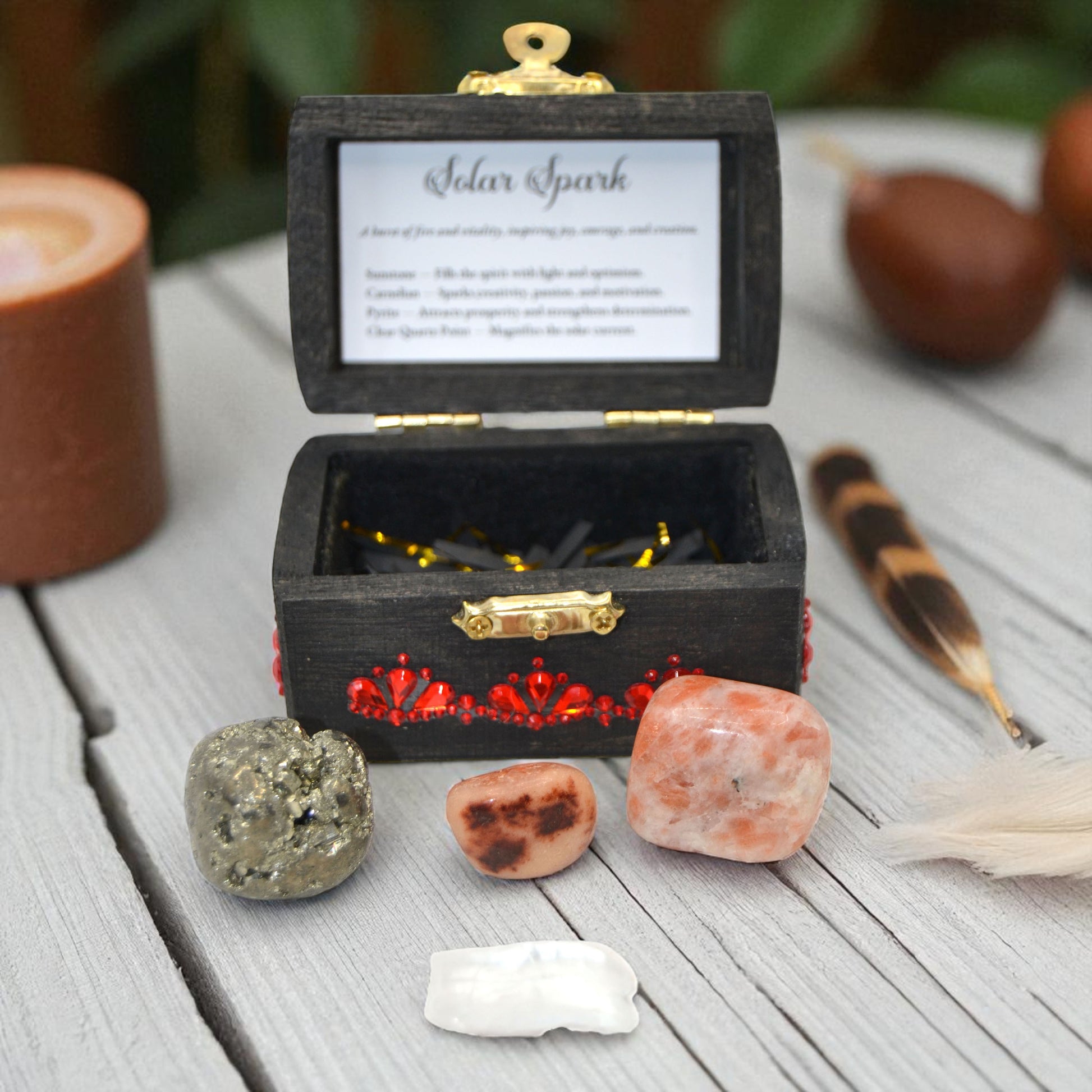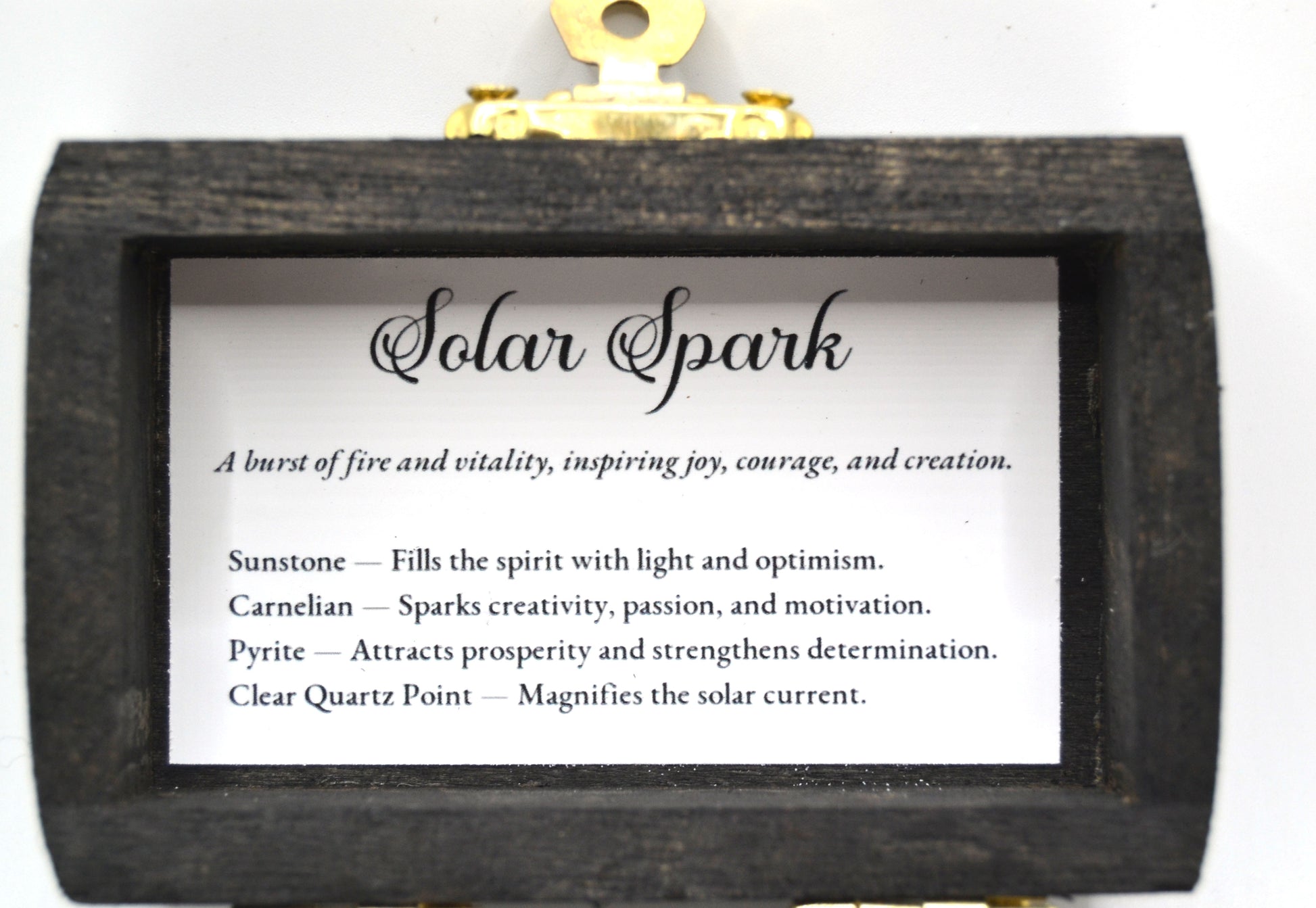 Solar Spark - A burst of fire and vitality, inspiring joy, courage, and creation. This keepsake shines with the warmth of the sun, carrying stones that awaken passion, brighten the spirit, and fuel determination. It’s made for dreamers who are ready to act, creators who crave courage, and seekers who need a spark to move forward with purpose.
