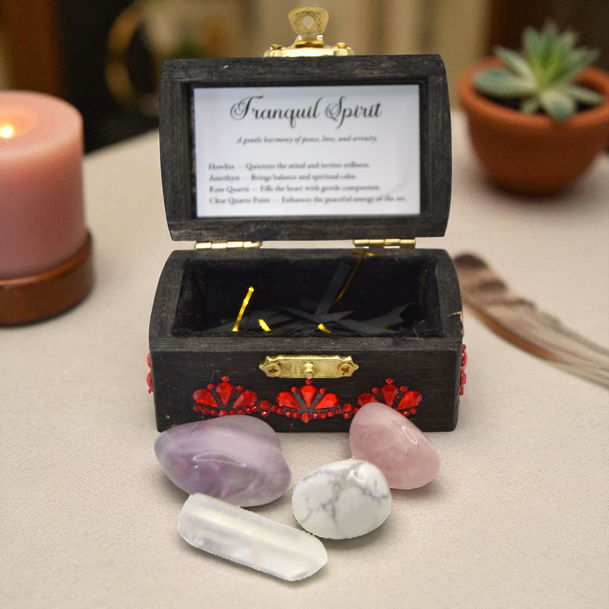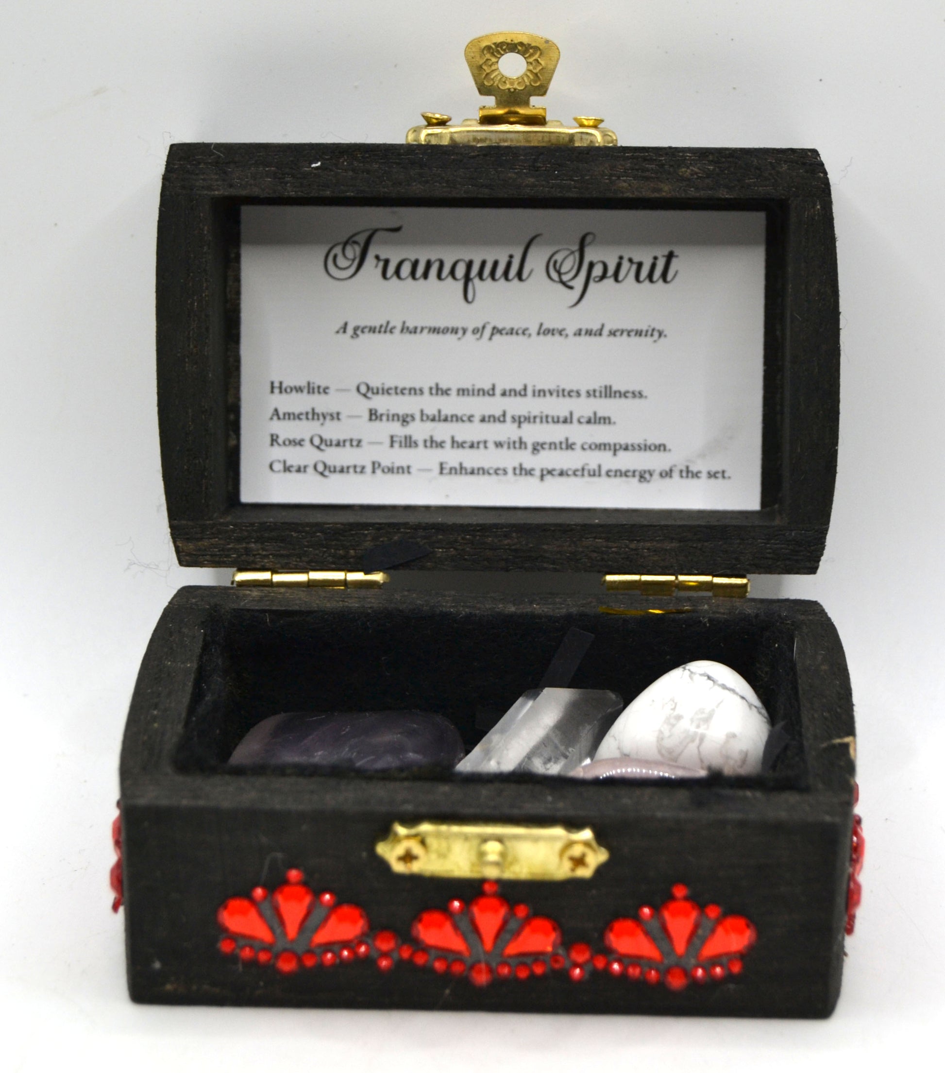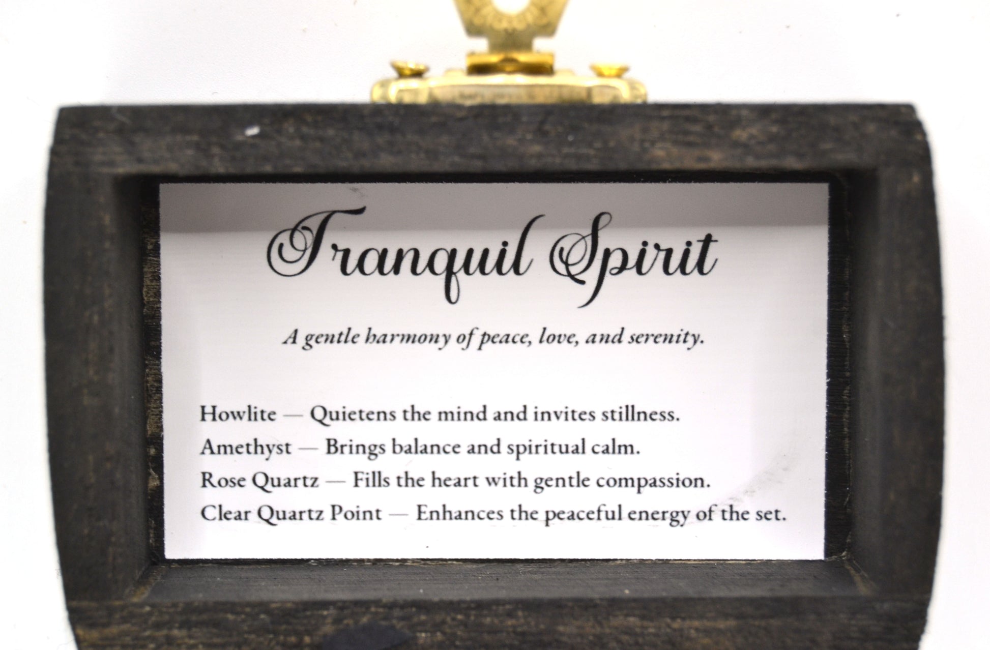 Tranquil Spirit - A gentle harmony of peace, love, and serenity. This keepsake whispers stillness to the restless heart. Its stones invite calm, restore balance, and fill the spirit with compassion. A set for quiet reflection, tender moments, and the gentle embrace of inner peace.